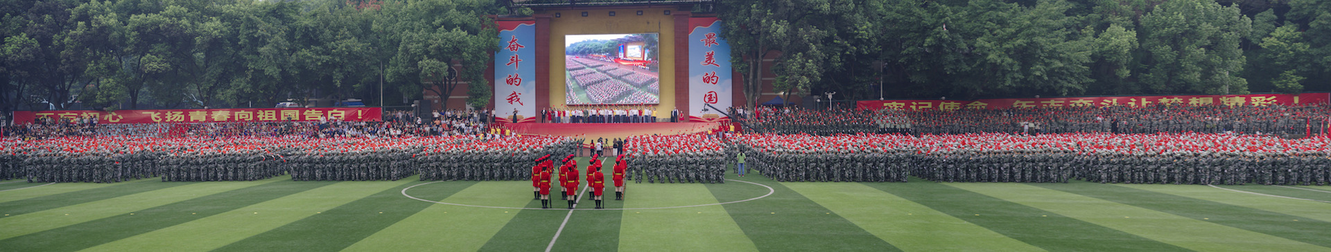 校长、军训师师长张卫国向参训同学致以问候,万名新生按照编排连队组成方阵,排列整齐,昂首挺胸,英姿飒爽,口号嘹亮,迈着雄健的步伐依次走过主席台,展现了新时代学子奋发向上的精神风貌。